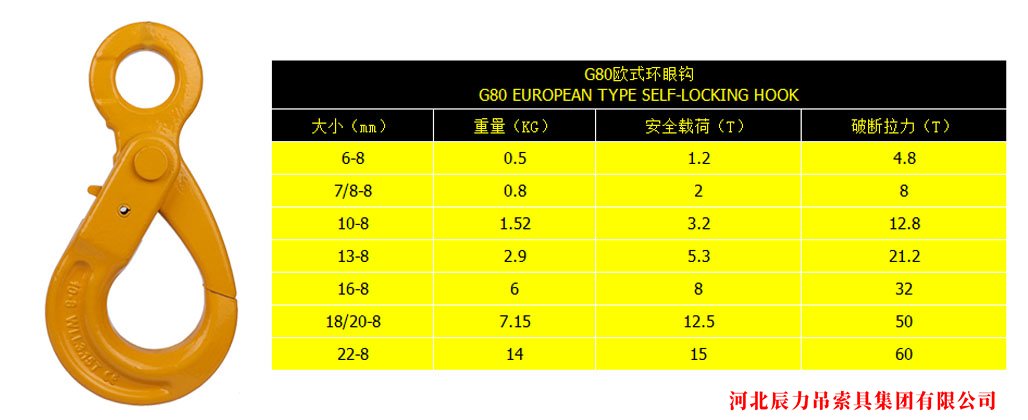 G80歐式環(huán)眼安全鉤 吊索具配件吊鉤