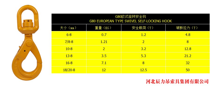 G80歐式旋轉(zhuǎn)安全鉤 起重吊鉤 索具配件
